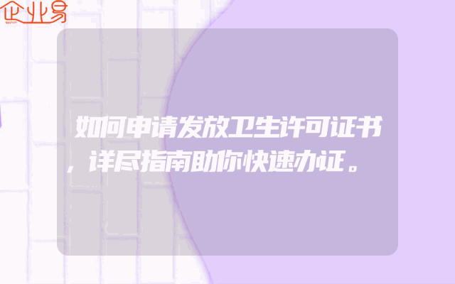 - 如何申请发放卫生许可证书,详尽指南助你快速办证。