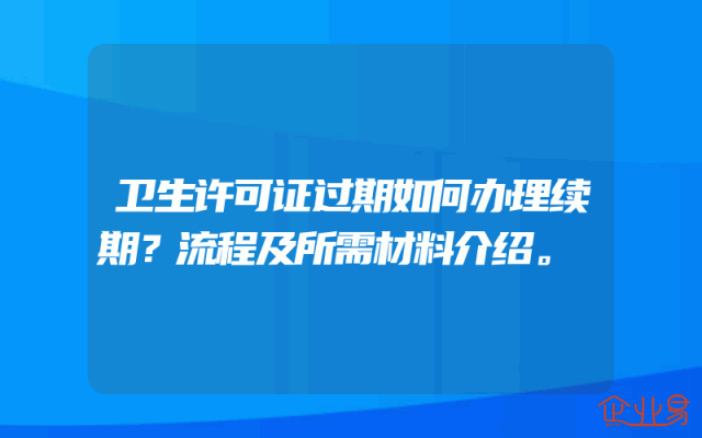 - 卫生许可证过期如何办理续期?流程及所需材料介绍。