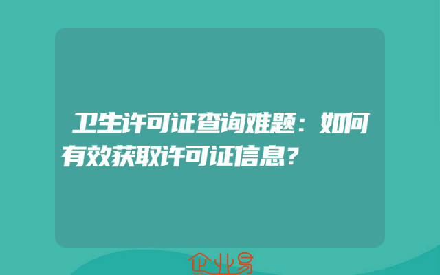 - 卫生许可证查询难题:如何有效获取许可证信息?