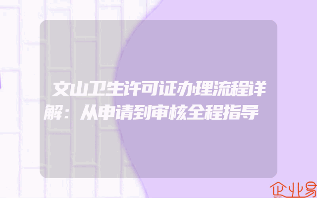 - 文山卫生许可证办理流程详解:从申请到审核全程指导