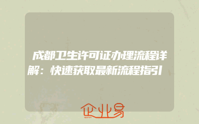 - 成都卫生许可证办理流程详解:快速获取最新流程指引