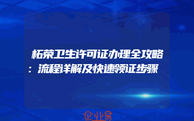 - 柘荣卫生许可证办理全攻略:流程详解及快速领证步骤