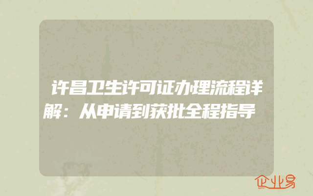 - 许昌卫生许可证办理流程详解:从申请到获批全程指导