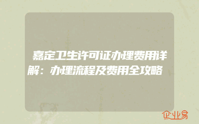 - 嘉定卫生许可证办理费用详解:办理流程及费用全攻略