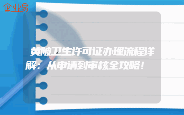 - 黄陂卫生许可证办理流程详解:从申请到审核全攻略!