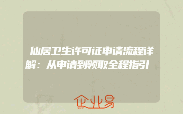 - 仙居卫生许可证申请流程详解:从申请到领取全程指引