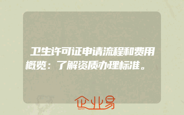 - 卫生许可证申请流程和费用概览:了解资质办理标准。