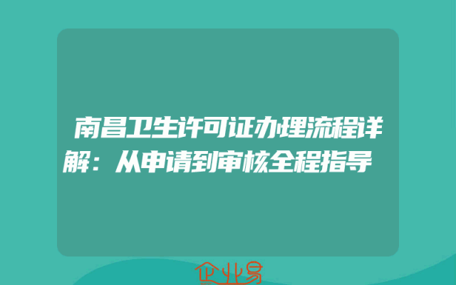 - 南昌卫生许可证办理流程详解:从申请到审核全程指导
