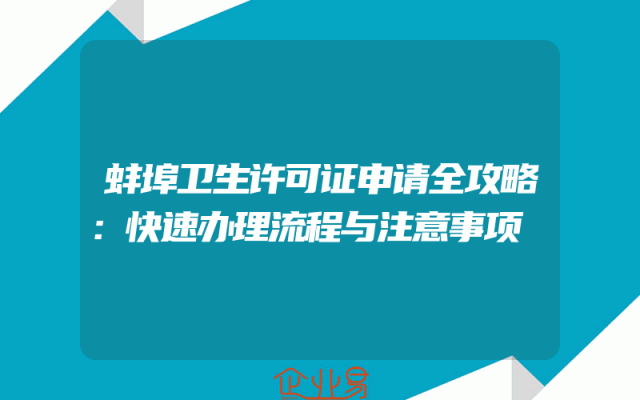 - 蚌埠卫生许可证申请全攻略:快速办理流程与注意事项