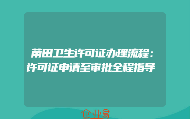 - 莆田卫生许可证办理流程:许可证申请至审批全程指导