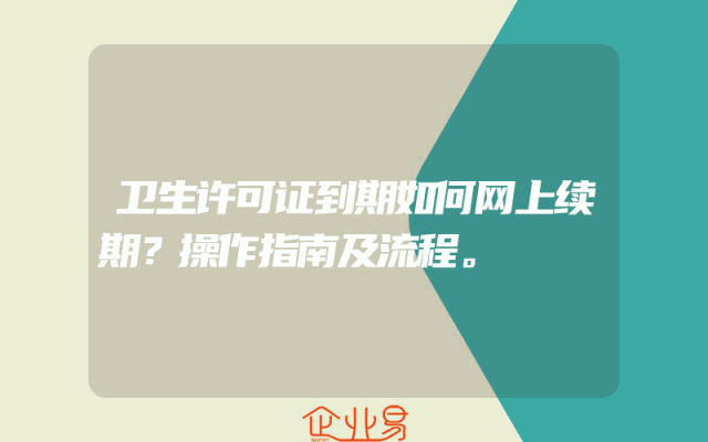 - 卫生许可证到期如何网上续期?操作指南及流程。