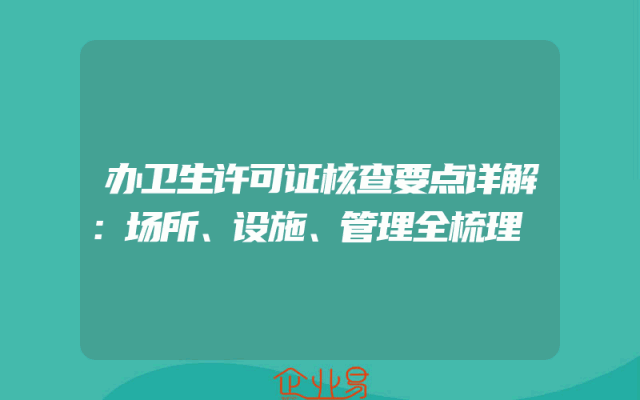 - 办卫生许可证核查要点详解:场所、设施、管理全梳理