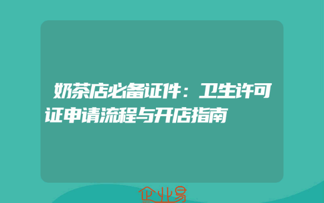 - 奶茶店必备证件:卫生许可证申请流程与开店指南