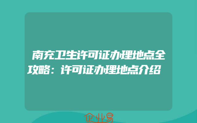 - 南充卫生许可证办理地点全攻略:许可证办理地点介绍