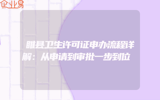 - 睢县卫生许可证申办流程详解:从申请到审批一步到位