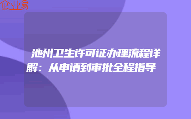 - 池州卫生许可证办理流程详解:从申请到审批全程指导