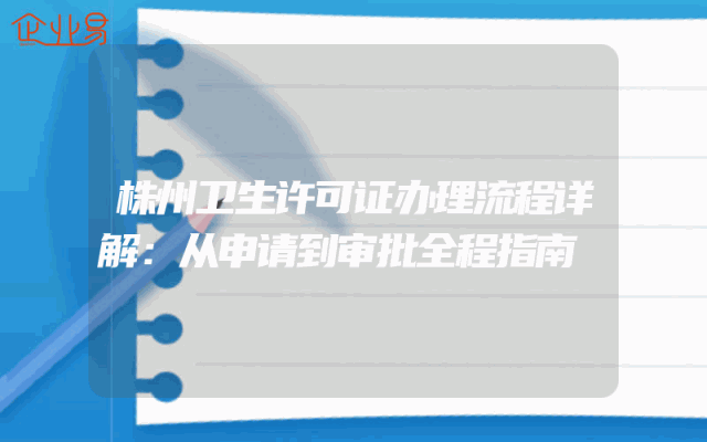 - 株州卫生许可证办理流程详解:从申请到审批全程指南