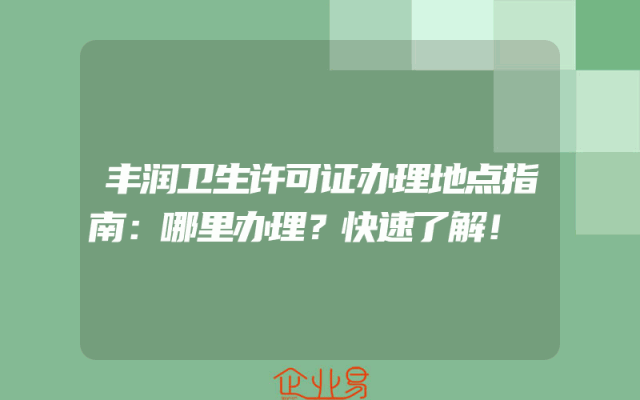 - 丰润卫生许可证办理地点指南:哪里办理?快速了解!