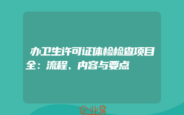 - 办卫生许可证体检检查项目全:流程、内容与要点