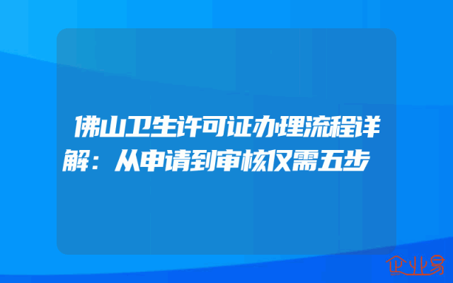 - 佛山卫生许可证办理流程详解:从申请到审核仅需五步