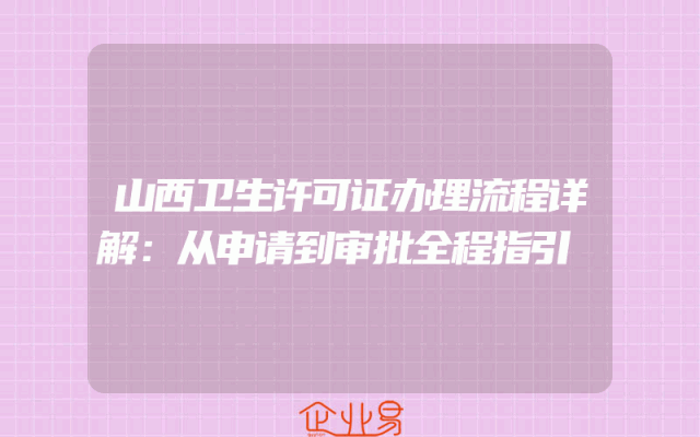 - 山西卫生许可证办理流程详解:从申请到审批全程指引