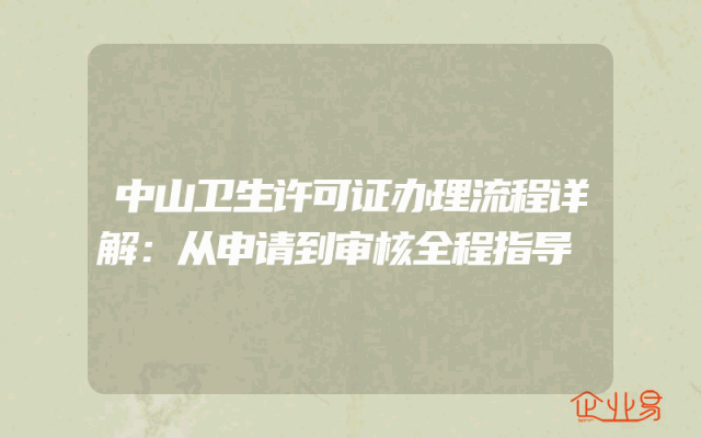 - 中山卫生许可证办理流程详解:从申请到审核全程指导