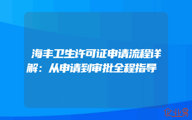 - 海丰卫生许可证申请流程详解:从申请到审批全程指导