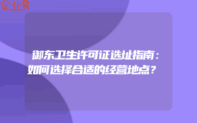 - 御东卫生许可证选址指南:如何选择合适的经营地点?