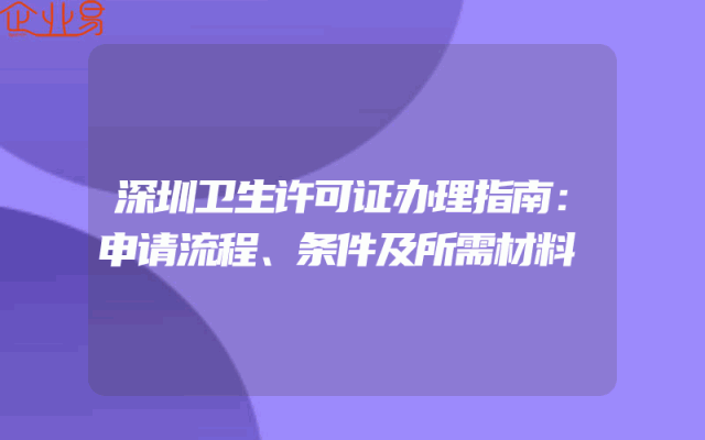 - 深圳卫生许可证办理指南:申请流程、条件及所需材料