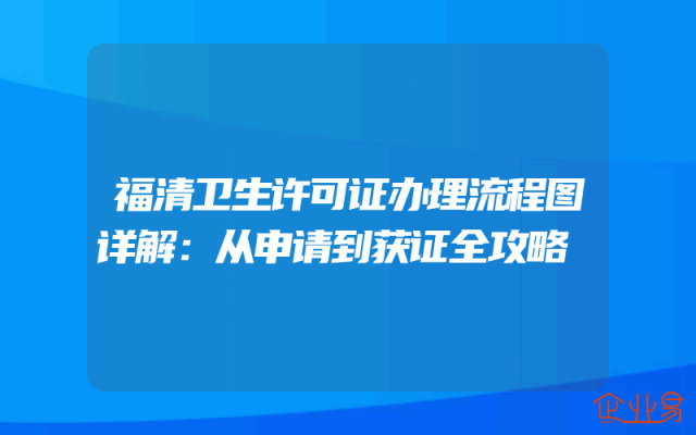 - 福清卫生许可证办理流程图详解:从申请到获证全攻略