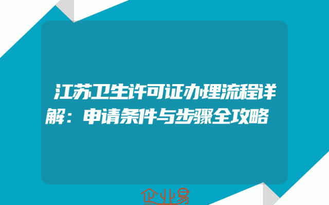 - 江苏卫生许可证办理流程详解:申请条件与步骤全攻略