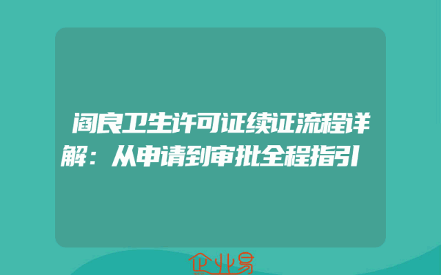- 阎良卫生许可证续证流程详解:从申请到审批全程指引