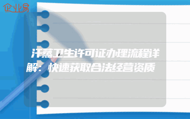 - 汗蒸卫生许可证办理流程详解:快速获取合法经营资质