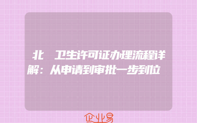 - 北滘卫生许可证办理流程详解:从申请到审批一步到位