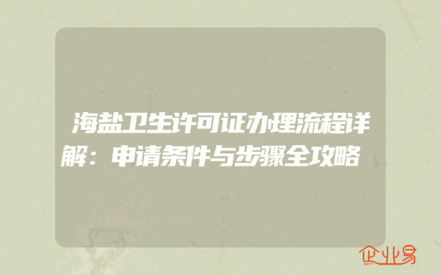 - 海盐卫生许可证办理流程详解:申请条件与步骤全攻略一、了解海盐卫生许可证的重要性海盐卫生许可证作为特定行业的关键证照,不仅代表了企业合法经营的资质,更是保障公众健康的重要前提。对于涉及食品