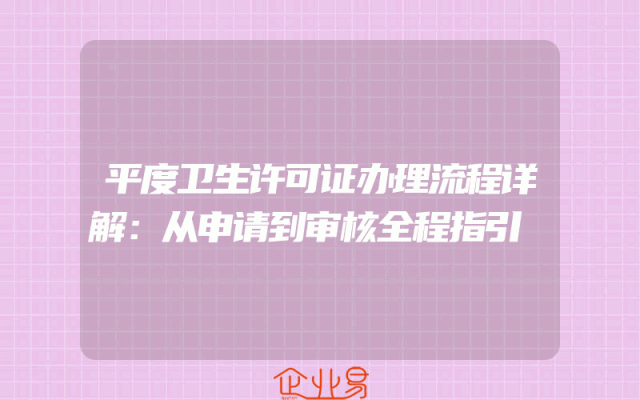 - 平度卫生许可证办理流程详解:从申请到审核全程指引