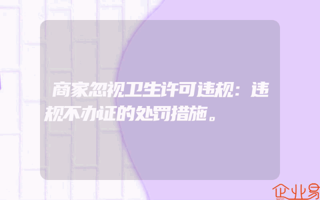 - 商家忽视卫生许可违规:违规不办证的处罚措施。