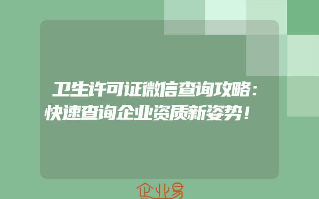- 卫生许可证微信查询攻略:快速查询企业资质新姿势!