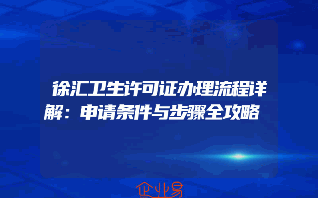 - 徐汇卫生许可证办理流程详解:申请条件与步骤全攻略