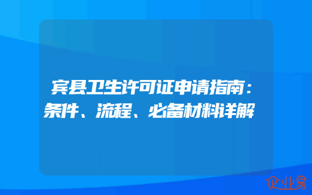 - 宾县卫生许可证申请指南:条件、流程、必备材料详解