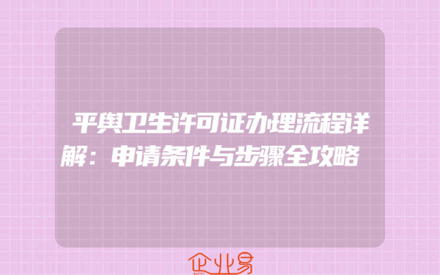 - 平舆卫生许可证办理流程详解:申请条件与步骤全攻略