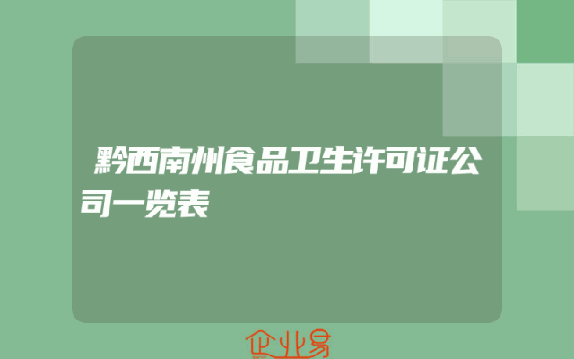 - 黔西南州食品卫生许可证公司一览表