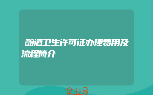 - 酿酒卫生许可证办理费用及流程简介