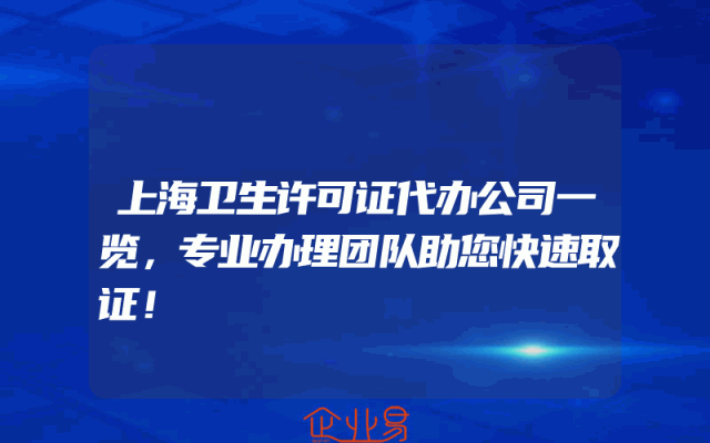 - 上海卫生许可证代办公司一览,专业办理团队助您快速取证!