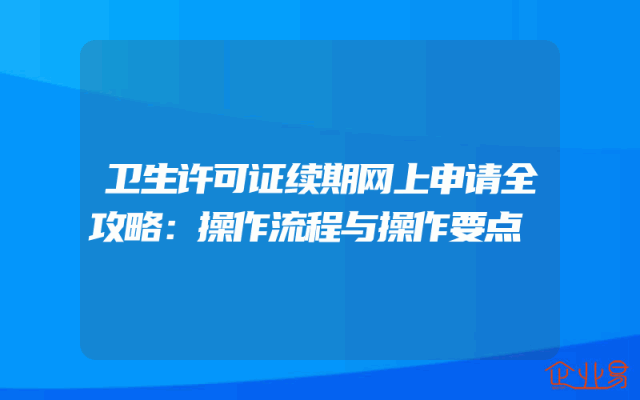 - 卫生许可证续期网上申请全攻略:操作流程与操作要点