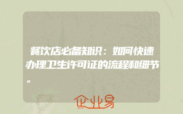 - 餐饮店必备知识:如何快速办理卫生许可证的流程和细节。