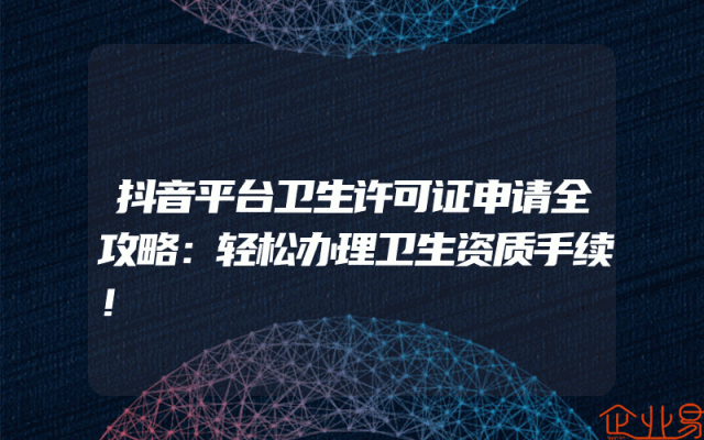 - 抖音平台卫生许可证申请全攻略:轻松办理卫生资质手续!