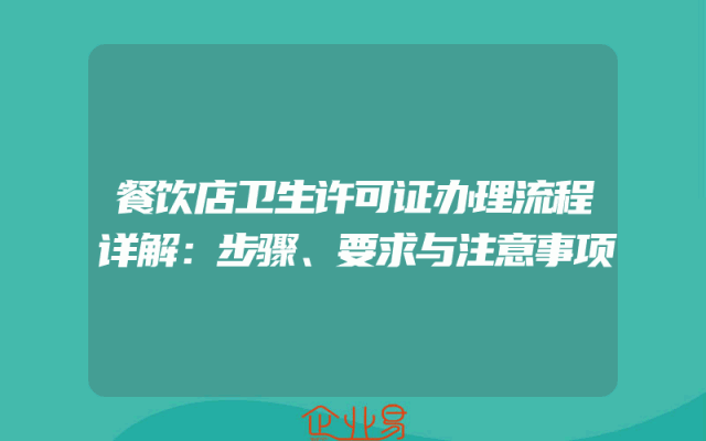 - 餐饮店卫生许可证办理流程详解:步骤、要求与注意事项