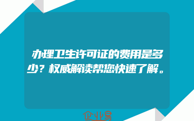 - 办理卫生许可证的费用是多少?权威解读帮您快速了解。