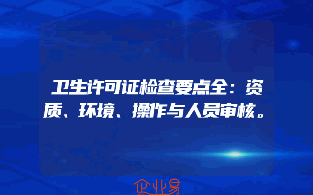 - 卫生许可证检查要点全:资质、环境、操作与人员审核。